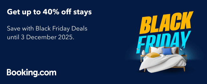 Booking.com Black Friday slevy 2025: Ušetřit můžete až 40% z ceny ubytování po celém světě. Nabídka platí jen do 3. prosince 2025.
