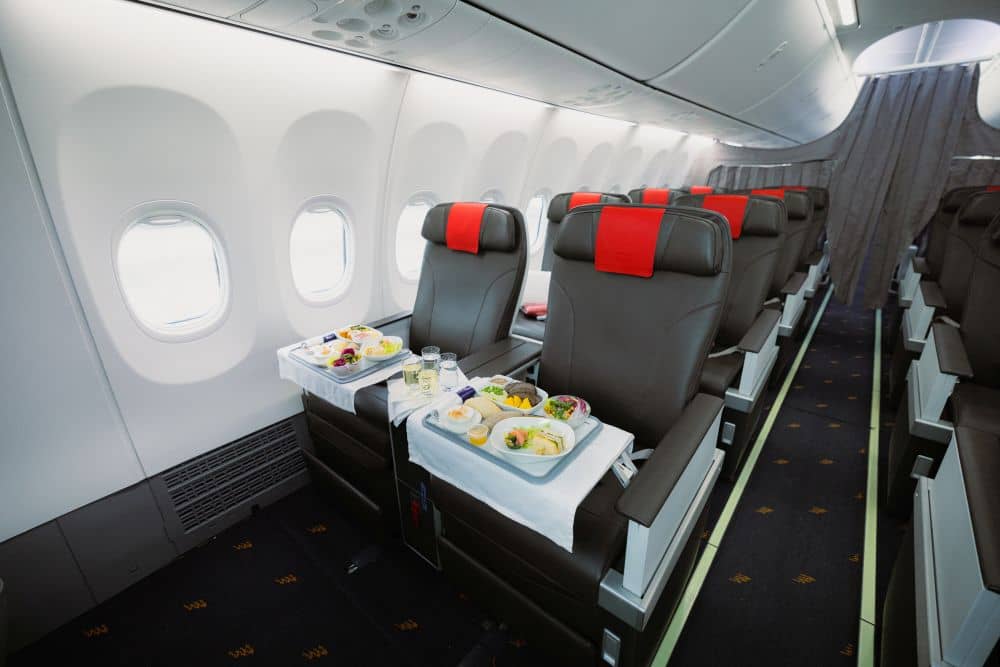 Business class je dostupná u letů se společnostmi: Smartwings (Boeing 737 MAX) a World2Fly (Airbus A330)